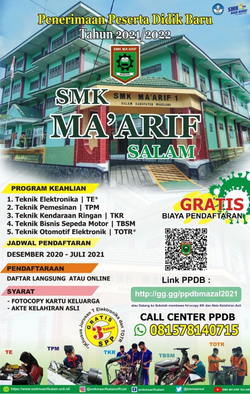 Penerimaan Peserta Didik Baru SMK Ma'arif Salam Tahun 2021/2020