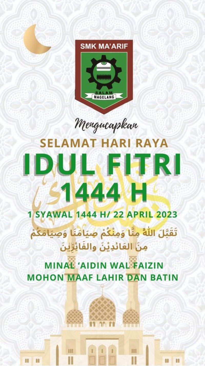 Keluarga Besar SMK Maarif Salam mengucapkan Selamat Idul Fitri 1444H