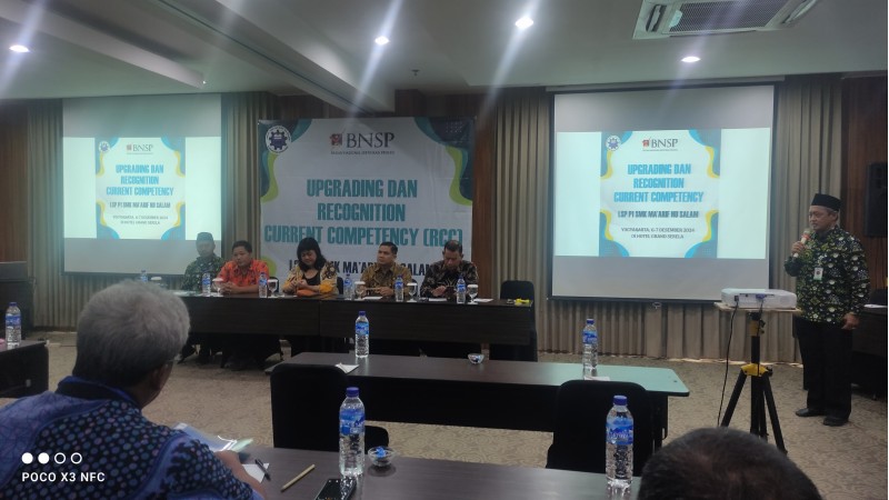 Pada Juma'at (06/12/2024) dan Sabtu (07/12/2024) Lembaga Sertifikasi Profesi (LSP) P1 SMK Ma'arif NU Salam melaksanakan kegiatan Recognition Current Competency (RCC) Perpanjangan Sertifikasi Kompetensi Asesor yang diselenggarakan di Hotel Grand Selera Yogyakarta.