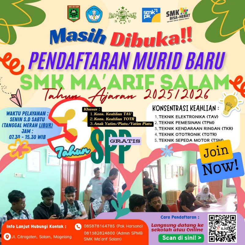 SMK MA'ARIF SALAM UNGGUL BERKARAKTER KOMPETEN SIAP KERJA || SMK MA'ARIF SALAM TELAH MEMBUKA PENDAFTARAN PESERTA DIDIK BARU TAHUN PELAJARAN 2025_2026