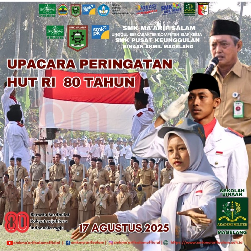 “Pelajar SMK Ma’arif Salam adalah ujung tombak masa depan. Jadilah pelajar yang cerdas, terampil, disiplin, dan berkarakter. Kemerdekaan bukan hanya untuk dirayakan, tapi juga untuk diisi dengan karya dan prestasi.”