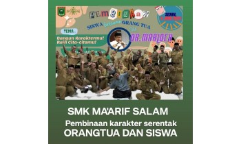 Senin, 5 Juni 2023 bertempat di SMK Ma'arif Salam dilaksanakan Kegiatan Parenting dan Penguatan Karakter Siswa SMK Maarif Salam bersama Dr. MARLOCK yang diikuti oleh siswa kelas XI beserta orang tua siswa. Dalam kegiatan tersebut Dr. Marlock banyak memberikan motivasi, semangat...